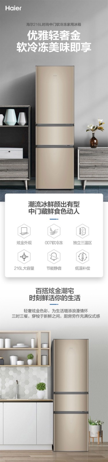 海尔冰箱BCD-216STPT 自营